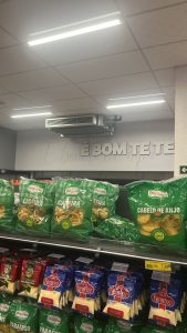 A BurgoBrás foi a empresa que instalou o sistema de climatização e renovação de ar da nova unidade dos Supermercados Kern em Hamburgo Velho. Projeto da Projetérmica, a nova loja da rede Kern Supermercado em Hamburgo Velho, conta com a tecnologia da marca Japonesa Daikin, sistema VRV Daikin, com unidades evaporadoras modelos duto e unidade evaporadora de 100% ar externo para a renovação de ar da loja. A tecnologia da marca Daikin, também entrega a automação do sistema de climatização, gerenciando o consumo de energia em tempo real, que é controlada por um watímetro digital, faixas de operação de temperatura, velocidade do ar e horários de funcionamento. Com isto, se tem uma gestão do sistema de climatização no celular ou computador. Vejam as fotos de como foi executada pela equipe da BurgoBrás as instalações do sistema VRV Daikin de 52Hp de potência (cerca de 520.000BTUH).