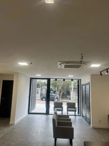 A nova sede da Onix Coworking, terá a tecnologia do sistema VRV Daikin Inova. São duas condensadoras VRV Daikin Inova de 16HP e 12HP que atenderão 28 unidades evaporadoras modelos cassete round flow e hi wall do térreo, segundo pavimento e rooftop. Recepção, área de lazer e salas de coworking serão climatizadas com a alta tecnologia japonesa, tendo eficiência energética, baixo nivel de ruído e uma excelente gestão de todo o sistema através do Reiri Daikin. E no terceiro pavimento temos mais uma unidade condensadora VRV Daikin Inova de 16HP que atenderá 14 ambientes de coworking para locação aos clientes.