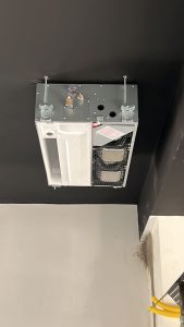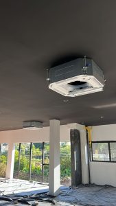 A BurgoBrás é a empresa contratada para desenvolver o projeto de climatização e executar as instalações do sistema VRV Daikin Inova na GV Dasa, em São Leopoldo. São 56HP , cerca de 560.000BTUH de potência, distribuídos em evaporadoras modelos cassete round flow, cassete de 1 via e duto. Nesta obra, as tubulações de cobre, assim como as unidades evaporadoras e demais instalações ficarão aparentes, pois não teremos forro nos ambientes. Desta forma, a opção por painel de cassete na cor preta já de fábrica foi aceita. Já o modelo de controle remoto é pelo Madoka, em preto, para termos um desing que fique dentro do projeto de interiores.
